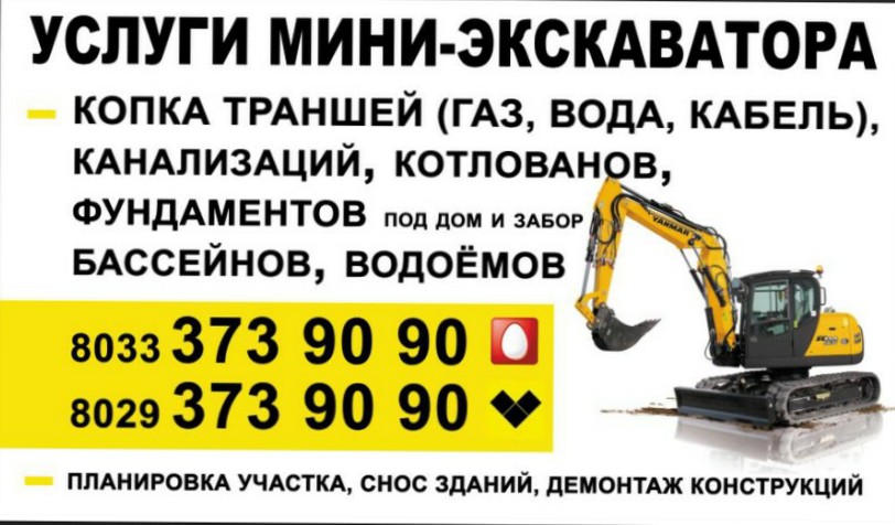 Услуги экскаватора, мини-экскаватора в Столбцах