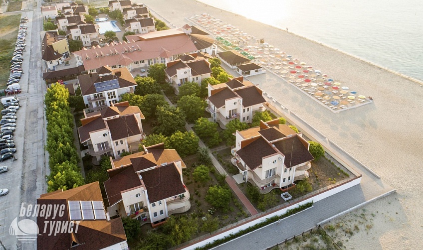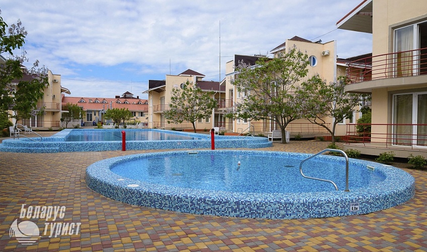 12 котеджей со знаками зодиака, которые утопают в зелени и цветочных клумбах, есть большой басейн и три детские площдки, а также детский