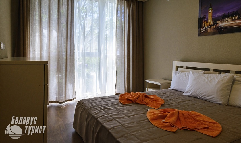 удобствами. Все корпуса прошли реновацию в 2015 году. Возможен прокат телевизоров, шезлонгов, зонтиков, водных велосипедов. К услугам отдыхающих